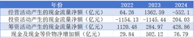 表6 2022-2024年宁波银行现金流量