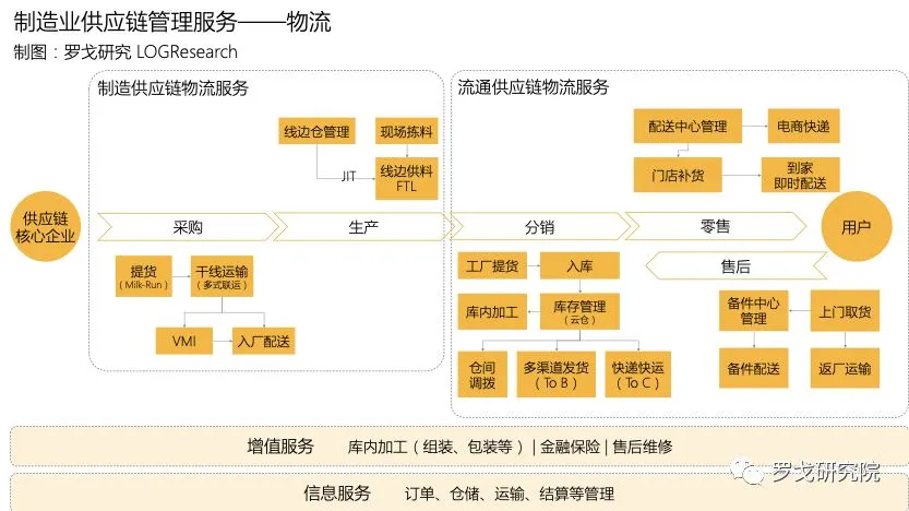 从分工的视角,品牌商/制造商一般专注于产品设计、市场营销等核心业务,并基于发展策略,不同程度外包供应链活动,以实现面向终端用户的产品提供,以及成本、效率、服务的最优化。供应链管理服务,即是围绕核心企业的供应链,基于计划,实现上下游协同,并通过业务层面的资源整合、运营与管理,保障各环节活动的有序开展。
