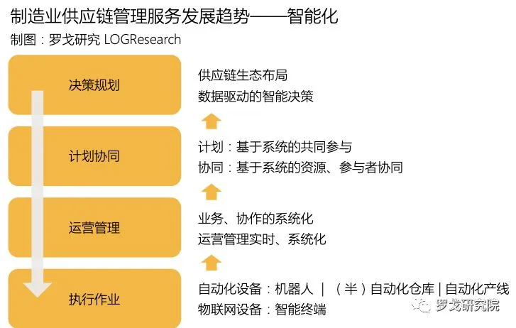 智能化技术及工具将被应用到制造业供应链的各环节,以作业层面的自动化,运营管理层面的协同与管控,支持供应链可视、自优化、精准预测。