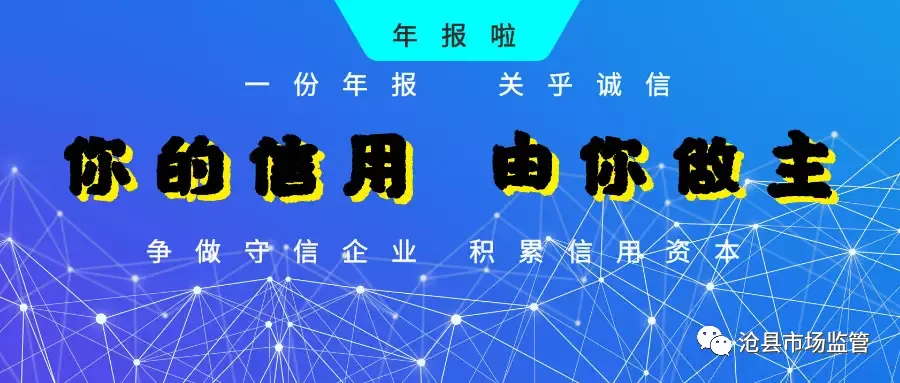 关注“沧县市场监管”微信公众号,点击下方菜单栏【年报公示】即可年报。