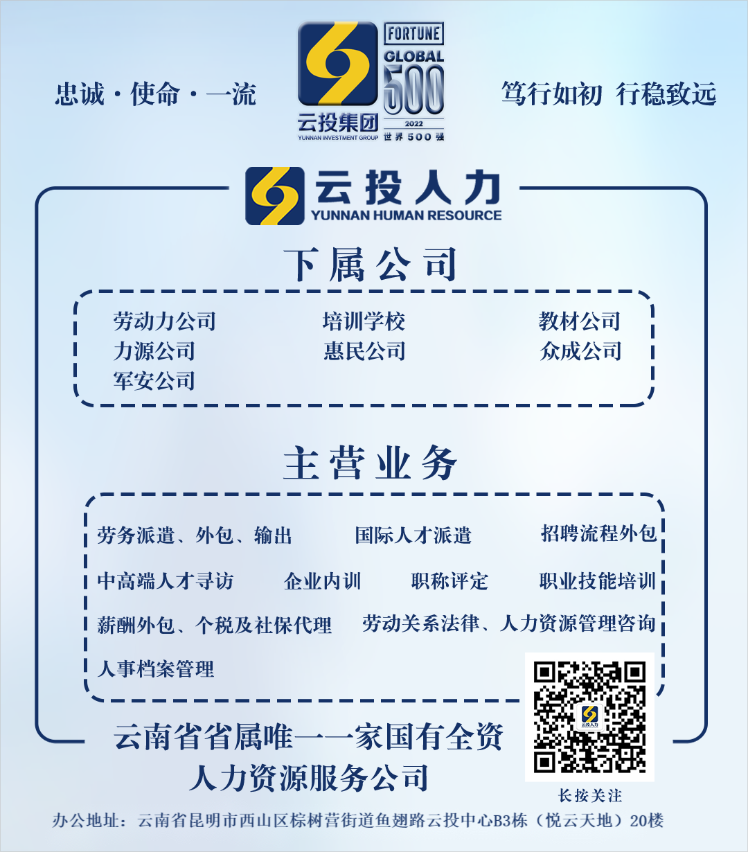要准确聚焦,依托云投集团的品牌和资源优势,抢抓发展机遇,做强做大主营业务,打造人力资源服务行业品牌,提升核心竞争力;