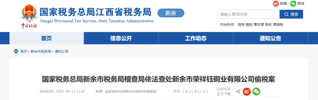 2025年6月,江西省税务局公开的一则案例显示,某铜业公司主要业务为购进废铜后进行延压加工,再将加工后的铜杆、铜排等产成品运输到全国各地进行销售,但运输发票均来源于当地一家物流公司。税务部门进一步核查发现,该公司虚构运输业务,通过取得虚开的增值税专用发票虚列企业运输成本,虚抵进项,进行虚假纳税申报,偷逃增值税和企业所得税等税费共计207.6万元;同时,该公司将销售非自产铜杆的收入,列入即征即退项目销售收入,违规享受资源综合利用税收优惠政策,骗取退税17.32万元。针对其违法行为,新余市税务局稽查局依法作出追缴税费款、加收滞纳金并处罚款共计464.69万元的处理处罚决定。同时对物流公司涉嫌虚开发票的问题另案处理。