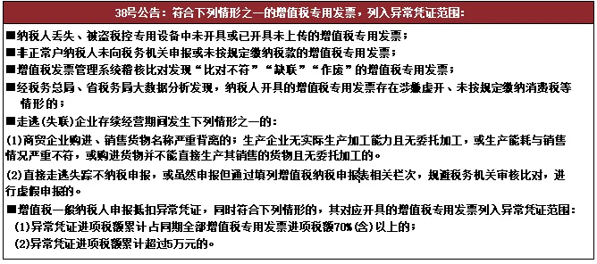 我们认为,异常增值税扣税凭证的认定有法定事由,国家税务总局在对《关于异常增值税扣税凭证管理等有关事项的公告》(国家税务总局公告2019年第38号)的解读中指出,该公告出台的背景是打击“注册没有实际经营业务、只为虚开发票的‘假企业’骗领增值税专用发票,并在实施违法虚开行为后快速走逃(失联),恶意逃避税收监管”的行为,即通过“以票控税”的思路实现对增值税(及部分情形下的消费税)的税收征管,防范“假企业”虚开发票、上游未就开具的发票申报纳税而下游进行抵扣造成税款损失的情形。