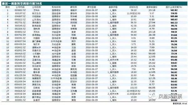 机构最近一周(8月6日8月10日)给予了5家公司超过目标价位1倍的股价,比此前(7月30日8月3日)多出4家。这5家分别为万科A、铁汉生态、云铝股份、山东海化、易尚展示。