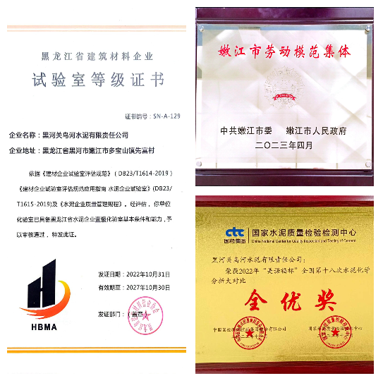 公司积极推动高质量发展,以高质量产品服务客户,先后获得“黑河市50强企业”“嫩江市劳动模范集体”“水泥质量全优奖”等荣誉称号;公司化验室被评为“黑龙江省水泥企业一级化验室。