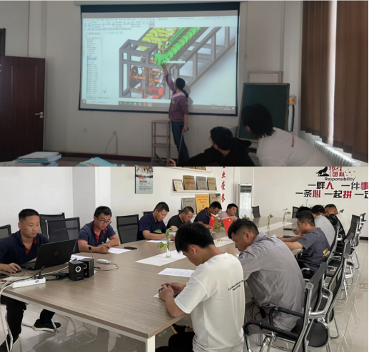 团队成员走访农户,发放调查问卷,调研其对于防风固沙带应用模式、高立式沙障和草方格制作工艺及机械化铺设的了解程度;开展以防风固沙沙障机械化制作为主题的讲座,总结国内外现有的沙障制作机械,对其机构组成、工作原理、优势不足进行介绍;完善高立式沙障打捆成栅机的优化设计,推广项目团队设计的自走式芦苇草方格铺设机,并与当地农户进行高立式沙障制作以及草方格铺设经验的交流。