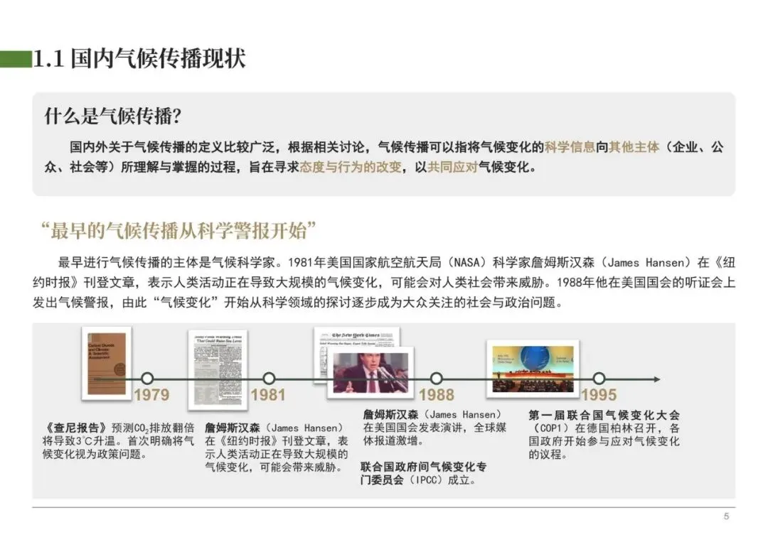 报告认为,有效的青年气候传播需要跳出传统说教,实现两大转变。一是叙事转变,从引发焦虑的“危机叙事”和疏离的“远方叙事”,转向更具共情力、与青年日常生活和切身利益相连的“身边叙事”。例如,近年来北方的持续高温等极端天气事件,让气候变化感知变得更近、更真实,为沟通提供了新契机。二是角色转变,将青年从被动的信息接收者或责任承担者,转变为有能力、有创意的行动参与者和解决方案共创者。