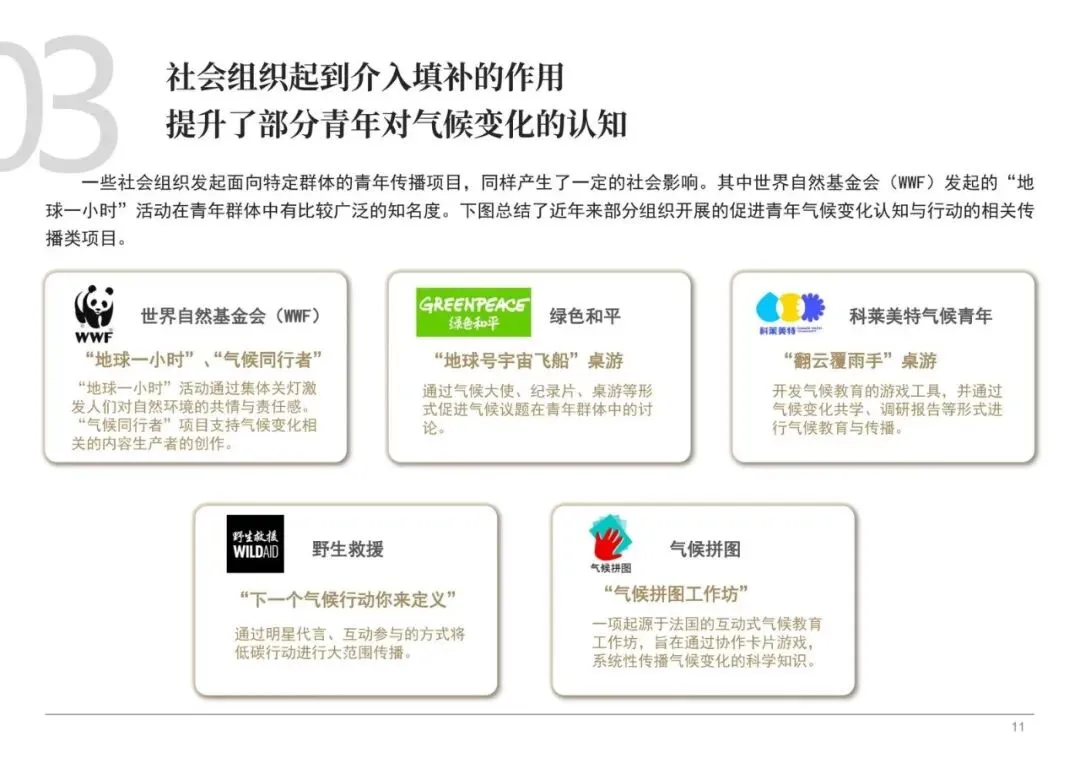 报告呼吁构建一个更良好的面向青年的气候传播与行动生态。这需要多元主体共同参与:媒体和内容创作者需创新表达方式,用青年熟悉的语言和形式(如科普视频、互动游戏)传递科学信息;教育体系应加强系统性的气候变化教育;社会组织可设计更多低门槛、有趣味、能带来即时正反馈的气候行动项目,如“地球一小时”、气候主题桌游等。最终目标是帮助每位青年基于自身的生活情境,构建属于自己的、可融入日常的气候行动框架,从“隔岸观火”的议论者,转变为“有感而动”的实践者。