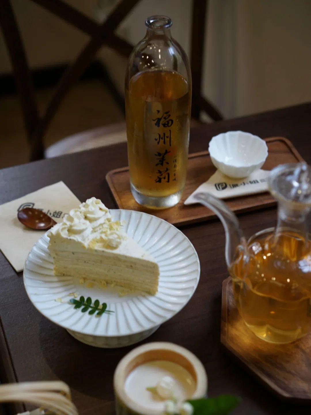 考虑到有些人不习惯喝纯茶,派小姐还推出了茉莉荔枝冰酿、茉莉花茶酒、茉莉鲜乳茶、茉莉冰淇淋等特调系列,让他们能通过特调方式感受茉莉花茶。