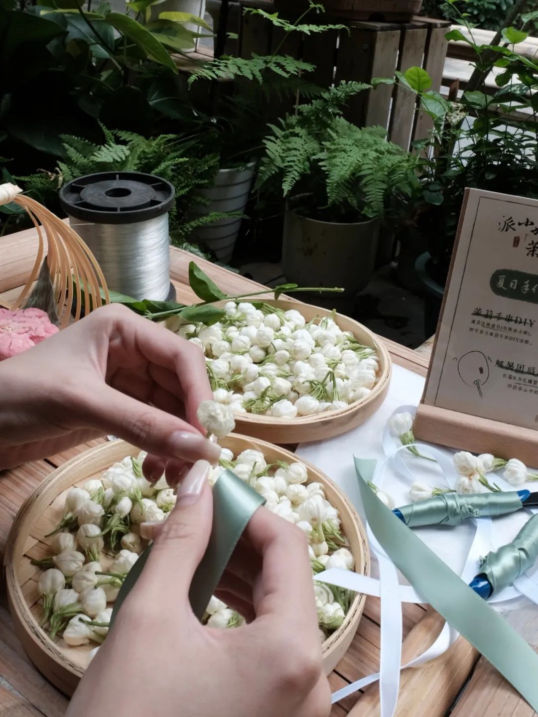 赢商网了解到,正值七八月福州茉莉花盛开的季节,派小姐就推出“茉莉花节”活动,游客可参与DIY制作茉莉花手串、茉莉花香包等。做好后便可带走,或戴手上,或挂车上,又香又浪漫。