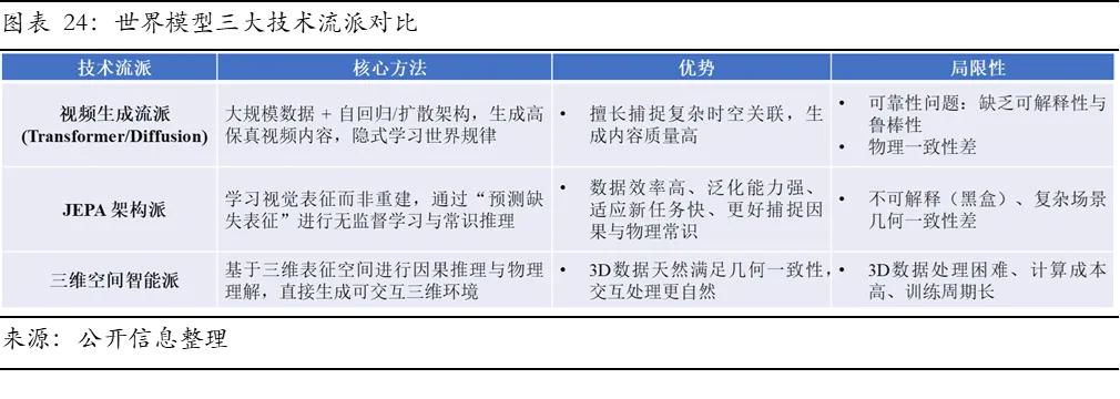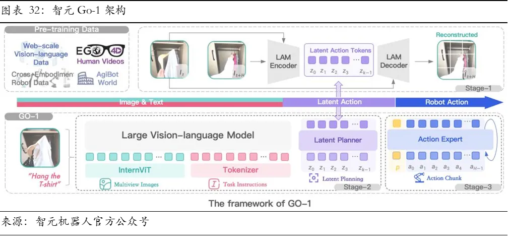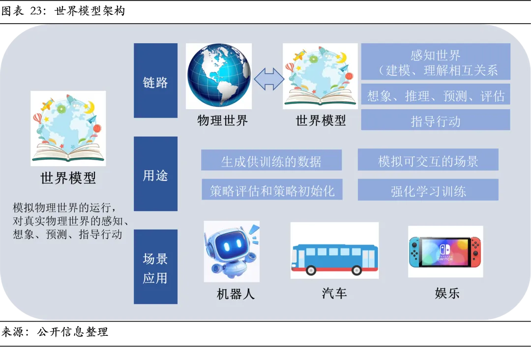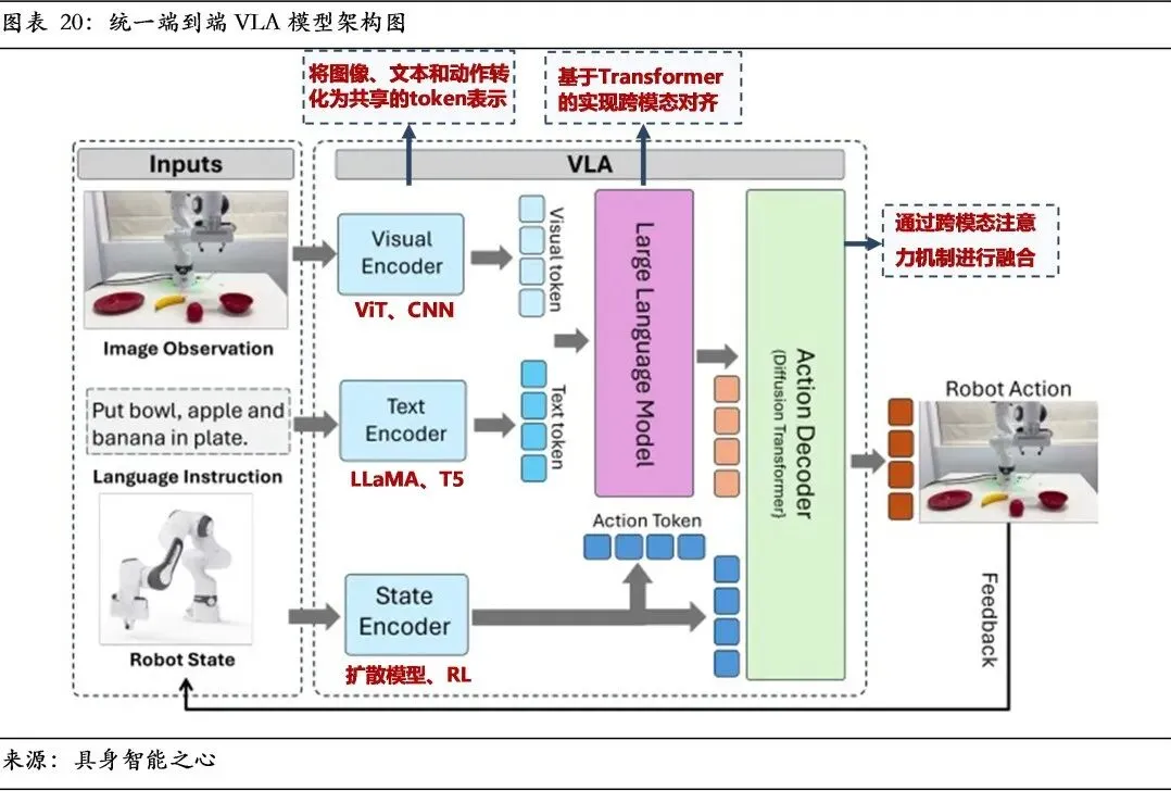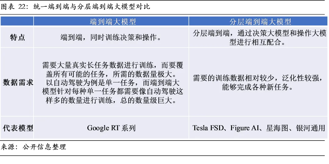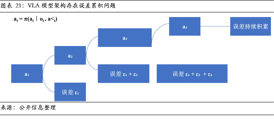 3、技术架构向“VLA+世界模型”融合演进,系统集成能力决定长期胜负。VLA模型虽为理想路径,但在长程规划与物理推理上存在局限。融入世界模型作为内部模拟器,为模型提供预测与推理能力,是技术演进的主线。未来具身大模型终极形态也并非单一模型,而是“认知端到端化、内部模拟化、控制高效化”的融合架构,竞争焦点将从单点算法转向复杂异构系统。