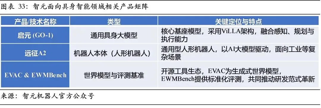 公司核心策略是通过开源GO-1模型、百万级真机数据集AgiBot World及世界模型EVAC,构建开发者生态、引领数据范式升级,并反哺自身技术迭代与产品落地。其标志性产品远征A2人形机器人已在工业制造等场景开展落地探索,形成以开源生态驱动产品与场景拓展的独特路径。关键验证点在于能否将生态优势切实转化为自身产品在闭环场景中的性能优势与商业订单。