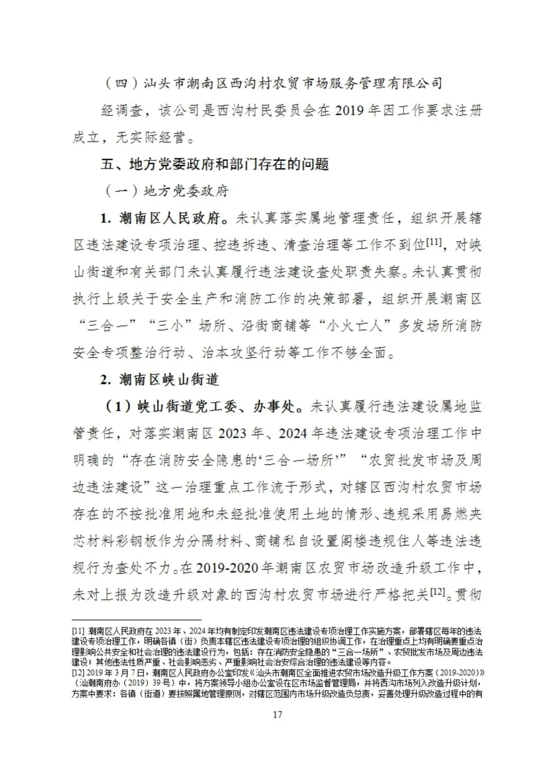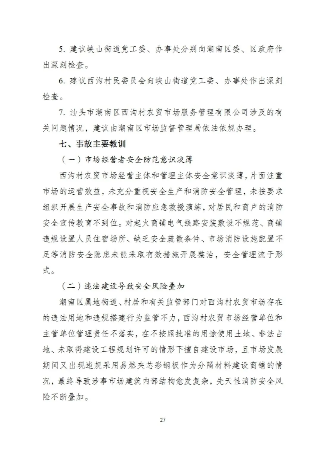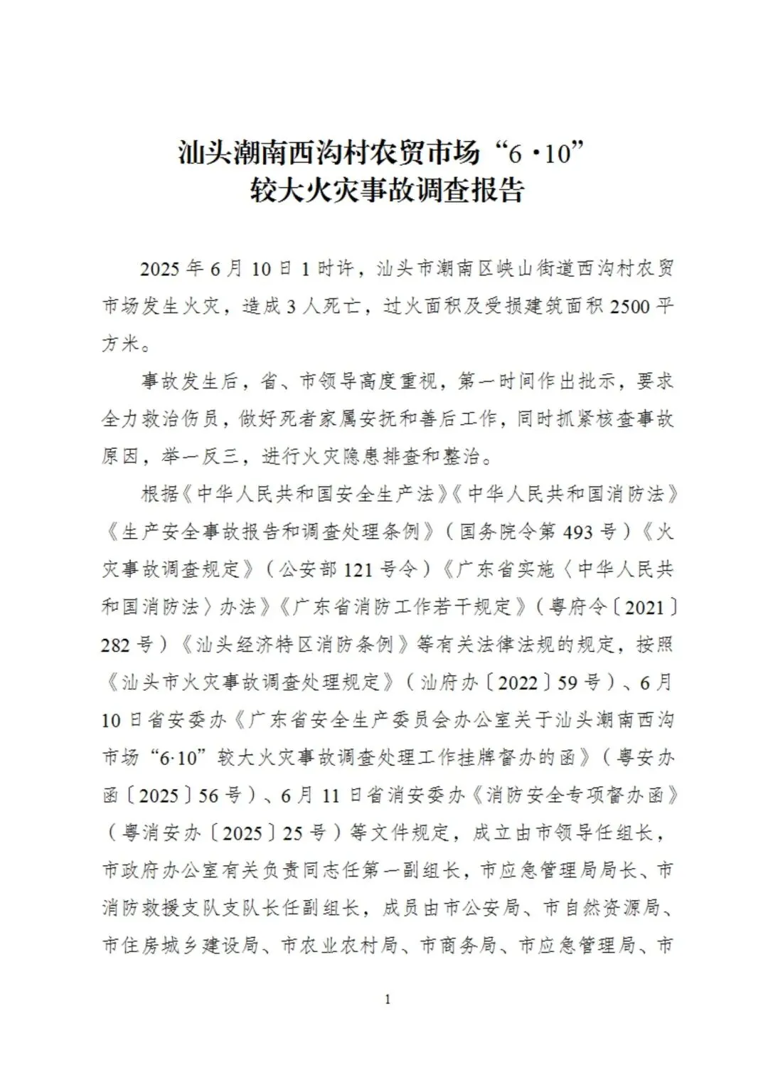 广东省汕头市人民政府门户网站1月6日公布“汕头潮南西沟村农贸市场‘6·10’较大火灾事故调查报告”。报告具体内容如下: