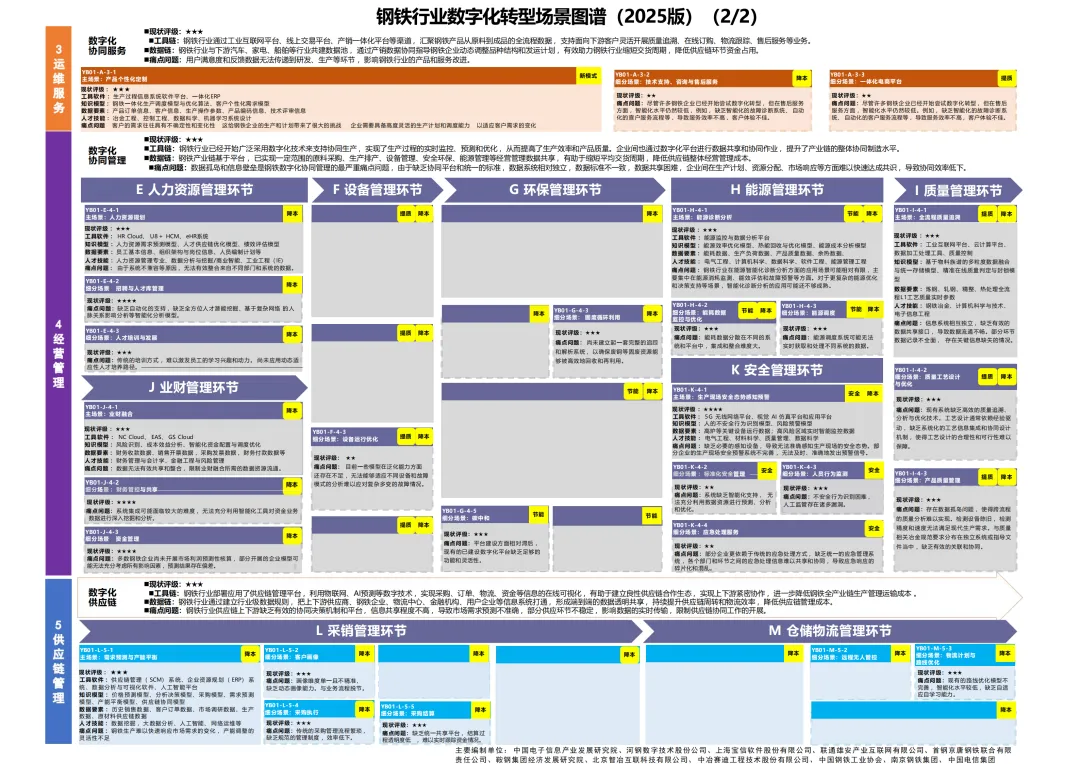 该材料聚焦钢铁、石化、工程机械等 14 个行业,构建了覆盖研发设计、生产制造、运维服务、经营管理、供应链管理等核心环节的数字化转型场景图谱,系统呈现了各行业数字化转型的现状、工具支撑、数据要素、人才需求及核心痛点,为行业转型提供了全面参考。