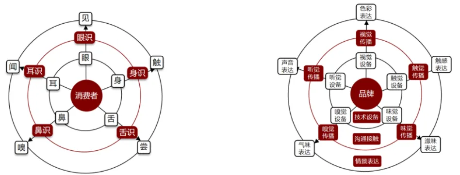 图14-12 消费者的“五感消费”与品牌方的“五感沟通”相对应模式
