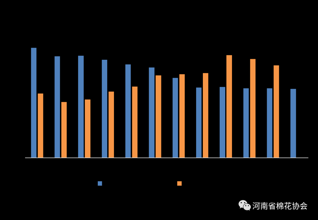 3、纺织企业使用进口棉比重为10.64%,较上月增加0.68个百分点,同比增加1.94个百分点。