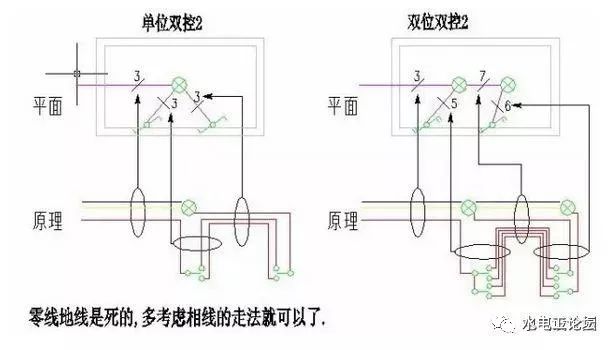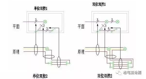 照明导线根数一直是一些电气人比较模糊的地方,比如对于双控开关的控制线路并不是很清楚,今天给大家分享导线根数标注的示意图!还另外整理了导管、线路敷设代号,希望对大家有帮助!