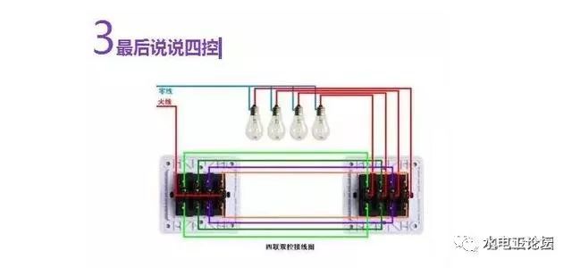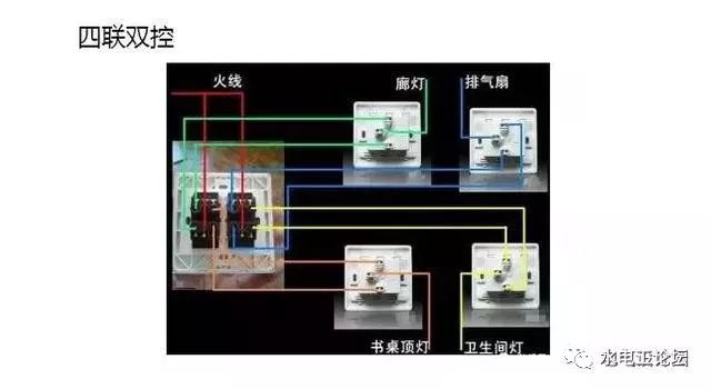在家庭电路中是最常见的,也就是一个开关控制一件或多件电器,根据所联电器的数量又可以分为单控单联、单控双联、单控三联、单控四联等多种形式。