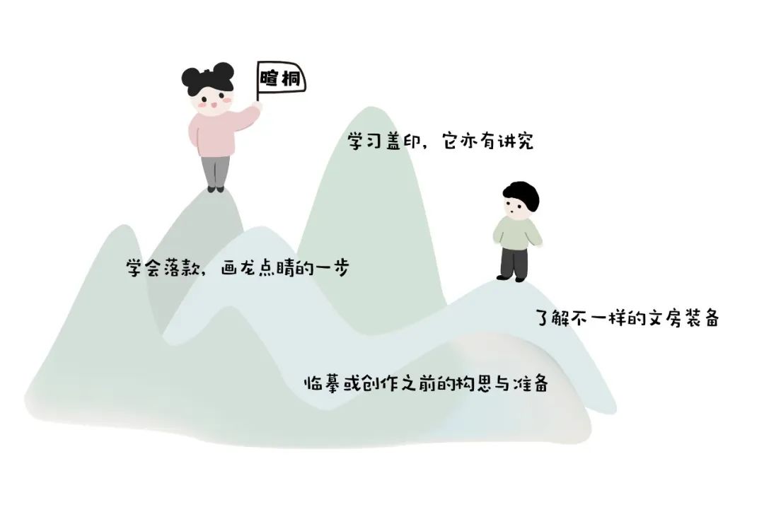 从选定风格与形式,创作小稿,到挑选趁手的文房用品,乃至于如何落款与盖印,都需要我们的确凿与笃定。在这个过程中,教室的书童总会相伴,给予贴心的科普与建议,如同我们平时课后做作业那样,不急不急,充足准备,都能做好。