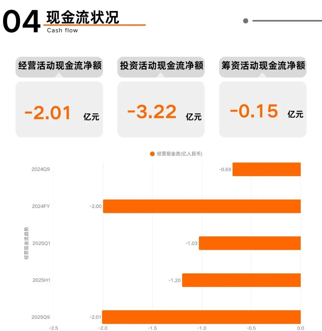经营现金流为负系业务调整期投入增加,投资现金流流出反映主动资产配置。