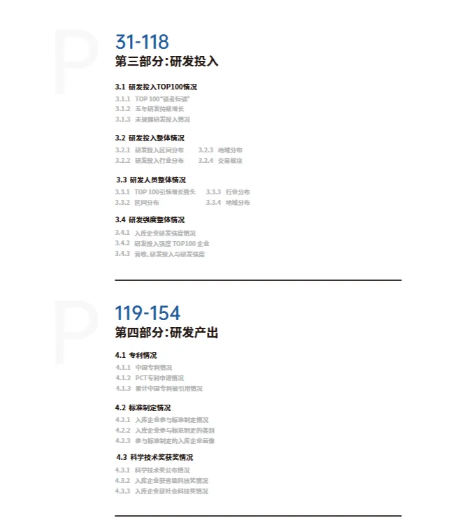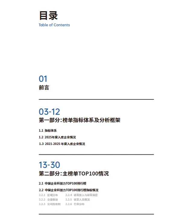 研发投入持续扩张:超 5900 家企业披露研发投入,华为以 1797 亿元研发投入断层领先,百亿级研发企业增至 43 家,头部聚集效应强化。 创新质量显著提升:发明专利申请量占比达 61.38%,较五年前大幅提升,PCT 国际专利申请量占全国四成以上,技术出海能力增强。 主体结构优化:民营企业在科创力 TOP100 中占比 56%,科创板、创业板企业研发披露率超 98%,成为创新中坚力量。