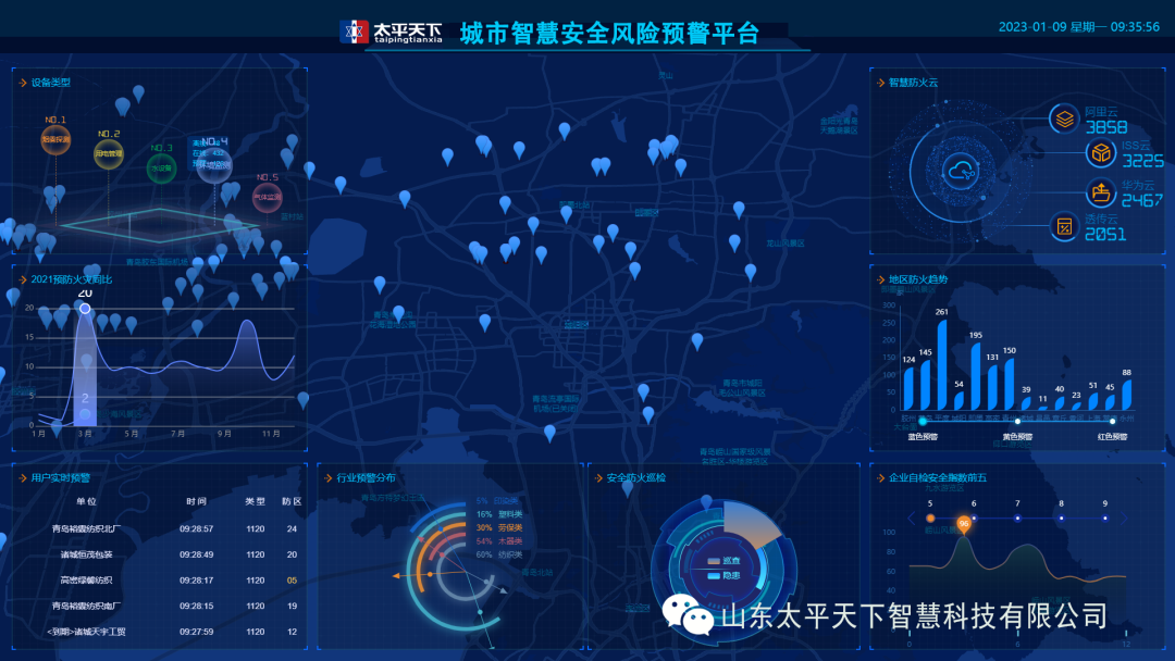 山东太平天下智慧科技有限公司定位为“城市安全风险预警一站式解决方案服务商“,致力于建设全方位、立体化的智慧安全风险预警管理平台,为城市安全管理实现全时预警、关口前移。