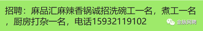 2.网络求职有风险,本号仅代发招聘信息方便大家获取信息,不对求职结果或问题负责,信息真伪请注意甄别。若有不实,请及时向小编反映;