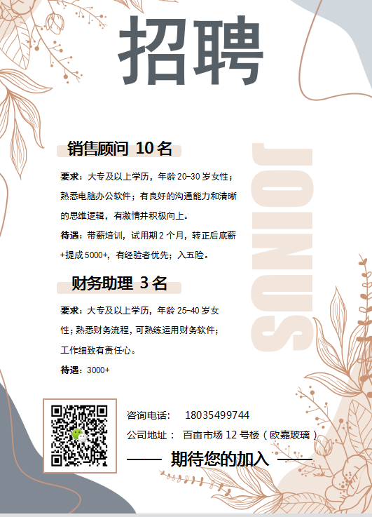 以上人员一经录用待遇优厚,每个月18号准时发放薪资,决不拖欠,我们本着为员工提供最好的工作平台,供大家轻松开心快乐的工作,尽情发挥自己的才能,欢迎正能量人士加入我们的优秀