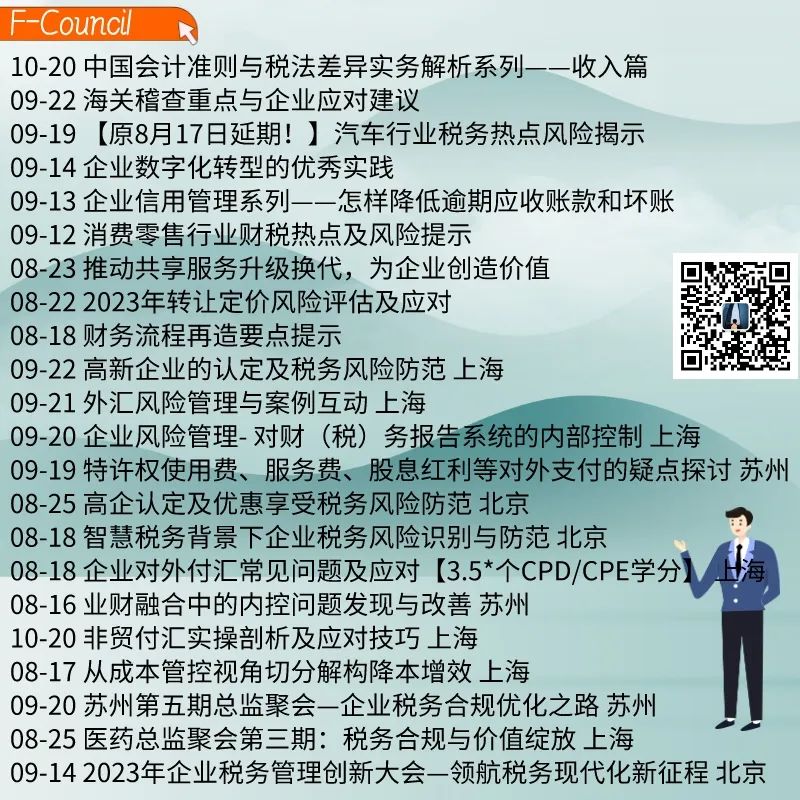 参与对象:中外资企业-财务/税务总监、经理等