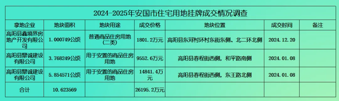 作为拥有雄厚产业基础的区域,高阳的地产市场在前几年也一直火热,长润地产,正昊地产等本土实力企业开发了众多口碑不俗的产品,而近几年红星美凯龙等外来企业也趁势入局。在这样的背景下,2023年,高阳房地产投资同比增长69.8%,但形势在2024年开始出现转折,房地产投资同比下降10.4%。更直观的数据来源于土地成交市场,2024-2025年,高阳县仅成交住宅用地3块,且其中2块为安置房用地。所以从土地供应来看,未来几年高阳区域的新房供应将以现有的在售项目为主,短期内会缺乏新的产品加入竞争。