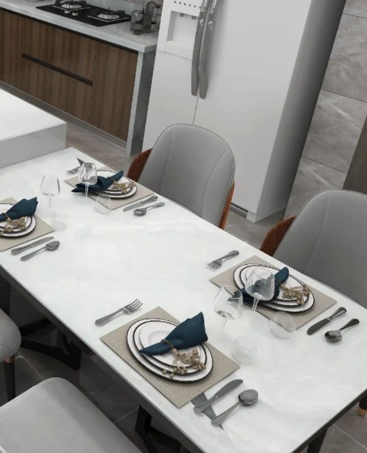 硅晶复合板材(又名:石英石)是在真空条件下将石英石晶体、树脂和微量颜料等材料通过异构聚合技术制成大规格板材,高达90%的石英结晶体主体结构,使其质地更加坚硬、紧密,具有其他装饰材料无法比拟的耐磨、耐压、耐高温、抗腐蚀、防渗透等特性。