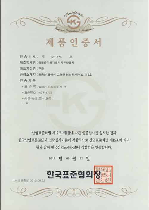 加贴KS标志表明琅帝石英石产品的生产通过严格审核,产品质量能持续稳定生产韩国工业标准水平以上,可以在韩国市场销售。