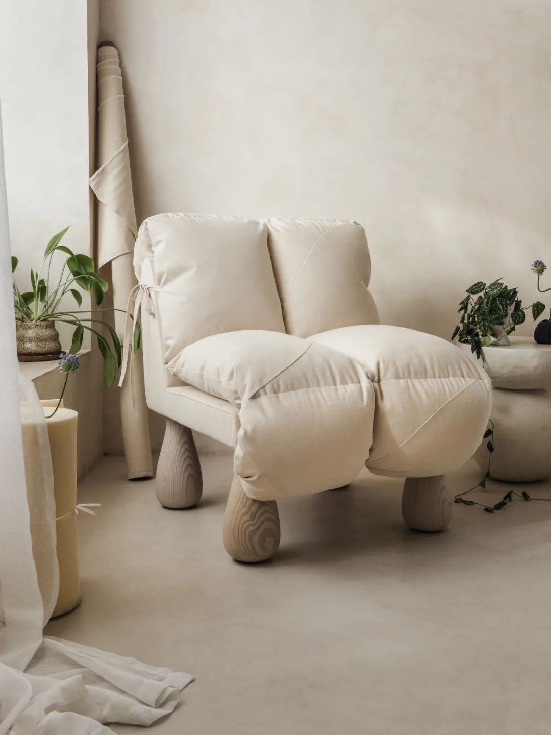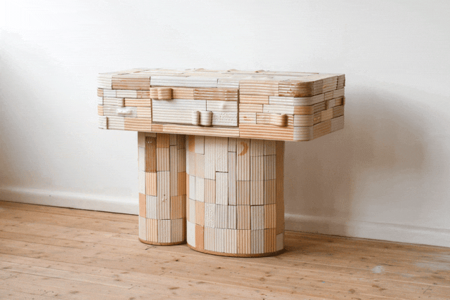展览亮点包括:Jeff Martin的Sarcophagus Console Table和Sarcophagus 12(挂壁橱柜),以及由Sam Klemick手工制作的Nap Chair和Chubby Stool,使用漂白的废旧道格拉斯冷杉木和纯棉的中古原色帆布材料。
