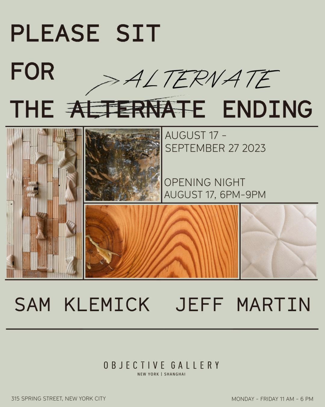 Objective Gallery非常荣幸地呈现艺术家Jeff Martin和Sam Klemick的首次联展,名为“Please Sit for the Alternate Ending 请坐下来聆听另一个结局”。