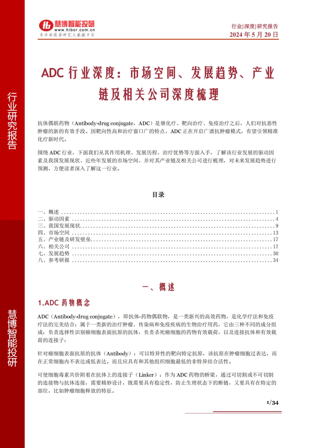 围绕 ADC 行业,下面我们从其作用机理、发展历程、治疗优势等方面入手,了解该行业发展的驱动因素及我国发展现状、近些年发展的市场空间,并对其产业链及相关公司进行梳理,对未来发展趋势进行预测,方便读者深入了解这一行业。