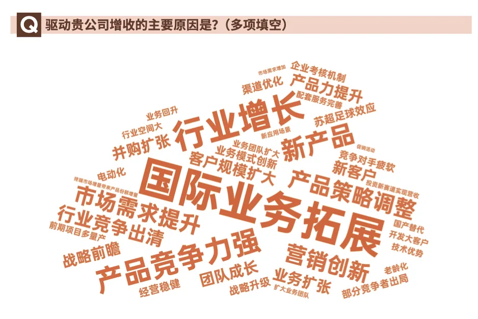 值得注意的是,驱动企业增收的核心因素包括国际业务拓展、行业增长及产品竞争力优势,而减收企业仍主要受困于行业竞争加剧与市场需求波动。
