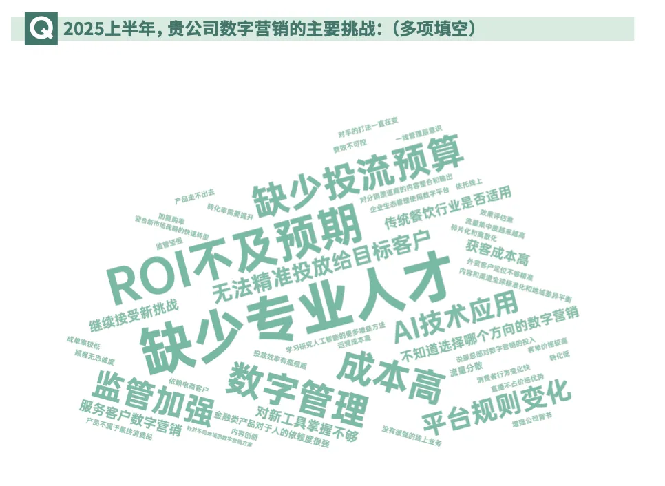 不过,行业仍面临 "缺少专业人才""ROI 不及预期 " 等核心挑战,成为制约数字营销深化发展的主要瓶颈。