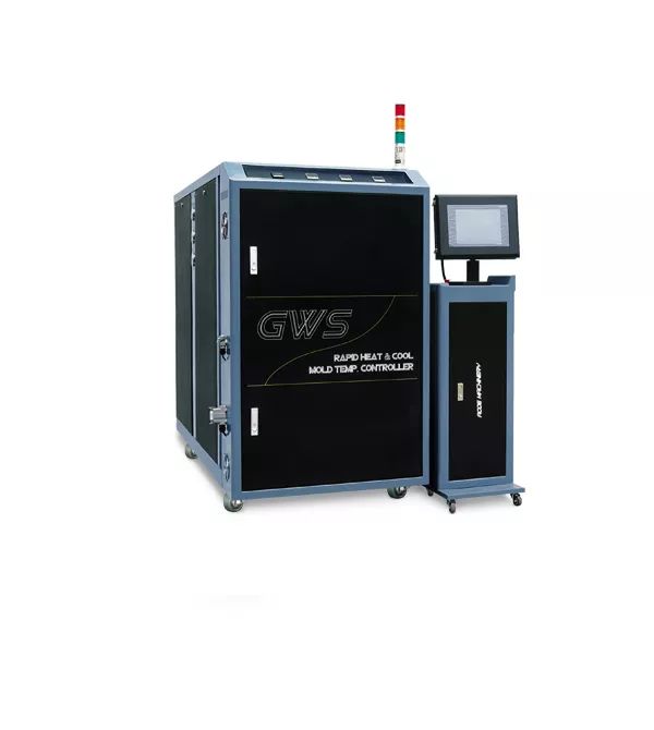 BWS高光无痕模温控制机是采用高温热水,当产品离开模腔后,注入高温热水到模具,等待模具温度提升到塑胶的TG值时[上限到达],开始给模腔注射塑胶,在注塑机完成保压后,再注入冷却水,待模具温度下降到[下线到达]设定值后开模,完成整了注塑过程。