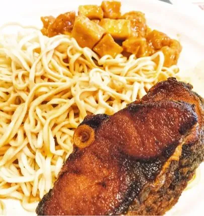 辣肉咸甜适口,精肉入味不柴,酱汁整体浓淡适宜,面条筋道不粘牙,醋味不会过火。再点上一块招牌熏鱼,这份冷面也算是吃出满足了。