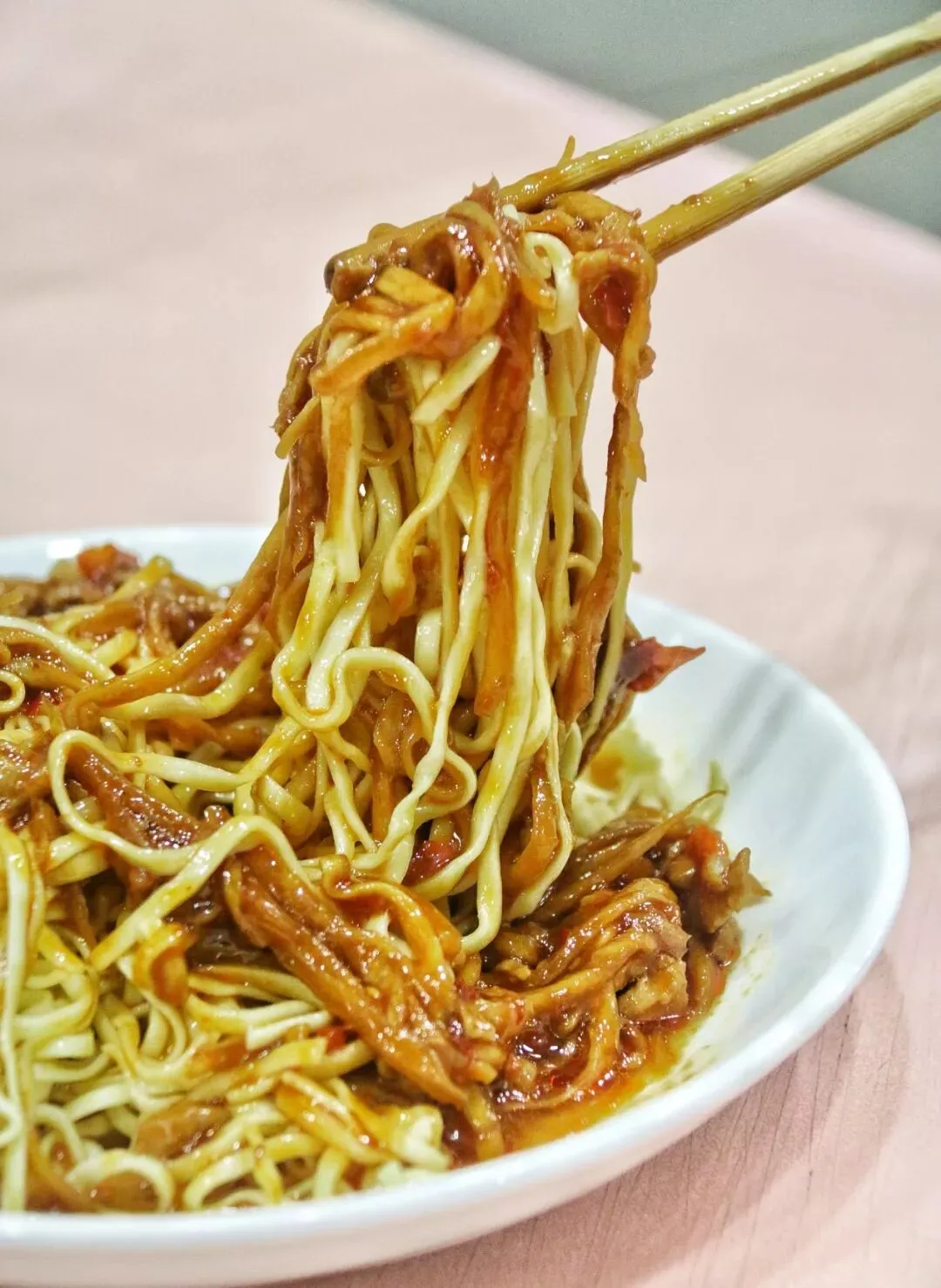 从各方面来说,他家的冷面都是无可挑剔的,面条不会干硬无力,也不会油润发腻,辣肉是地道的上海甜辣口味。
