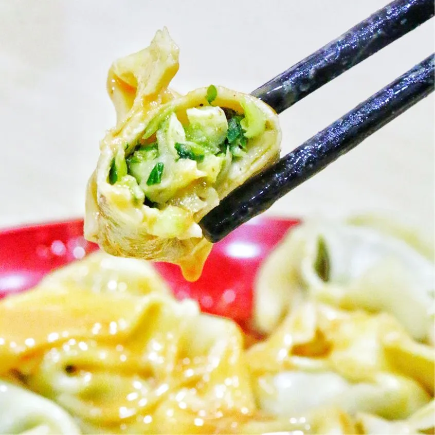 一份10只的冷馄饨个个皮薄馅多,虽然整体菜比肉多,但是荠菜新鲜切得很细碎,顶上的白芝麻更是增添了风味。