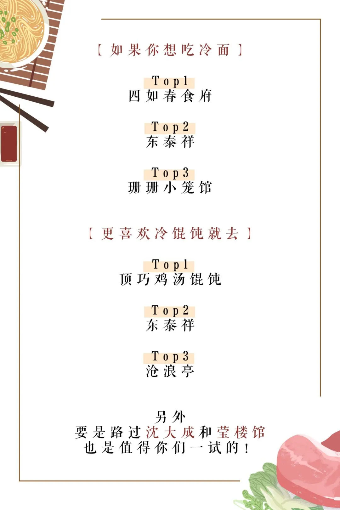 综上所述,小资君这次调查了沪上35家冷面冷馄饨店铺,精选了8家推荐,和3家拔草踩雷店!