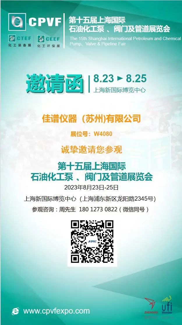 邀请函|8月23-25日,佳谱仪器与您相约上海国际石油化工泵、阀门及管道展览会!