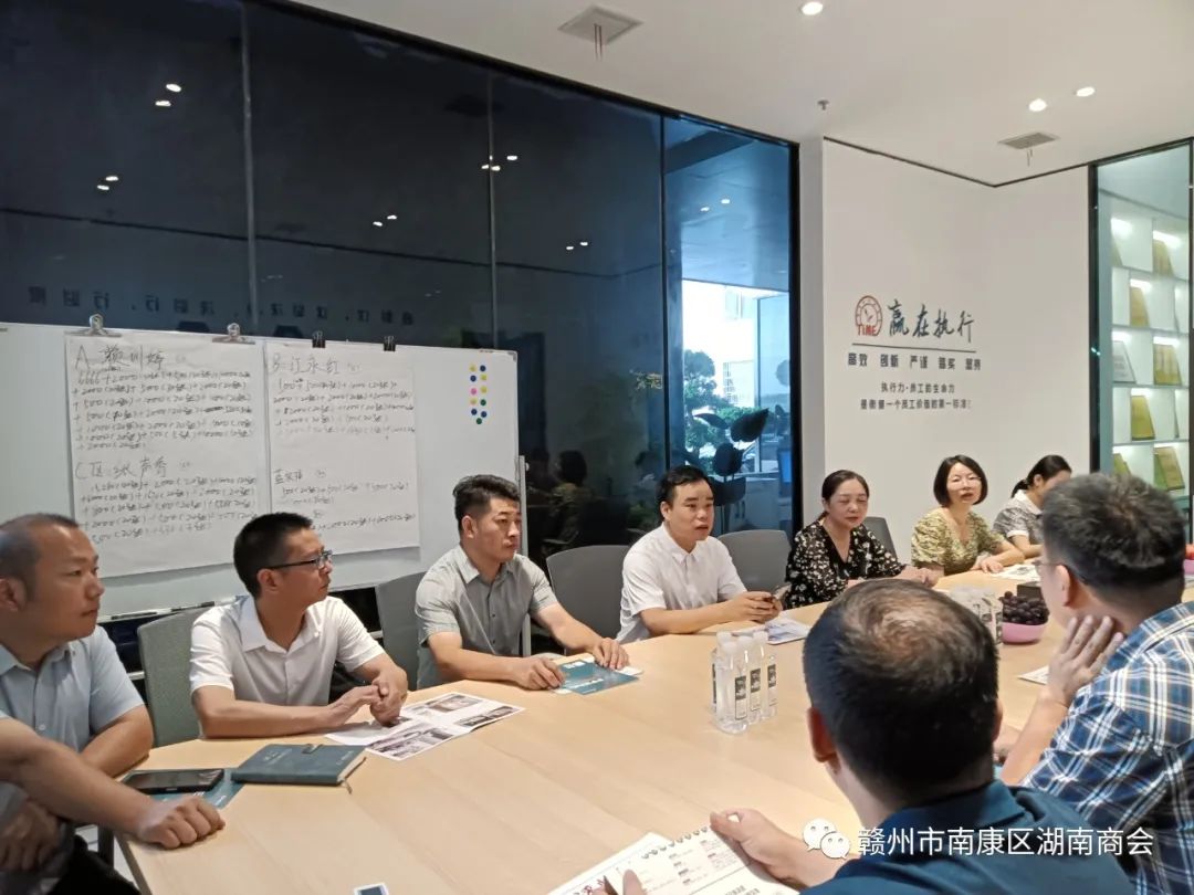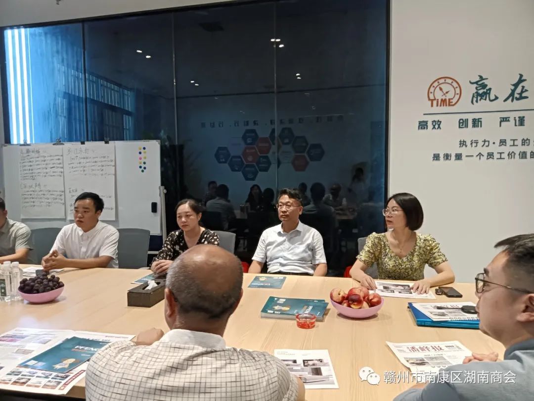 8月17日,株洲动力谷发展研究中心(市政府政研室)副研究员付剑、民建株洲市委会宣传科科长詹昱一行到商会会员企业开展走访调研活动,赣州市政协副秘书长(兼)、民建赣州市委会专职副主委钟彦,民建赣州市委会办公室主任胡平平,南康区委统战部副部长、工商联党组书记黄征一并参与走访调研。商会执行会长谭满德、唐游华,秘书长蒋海春进行接待并陪同走访调研。