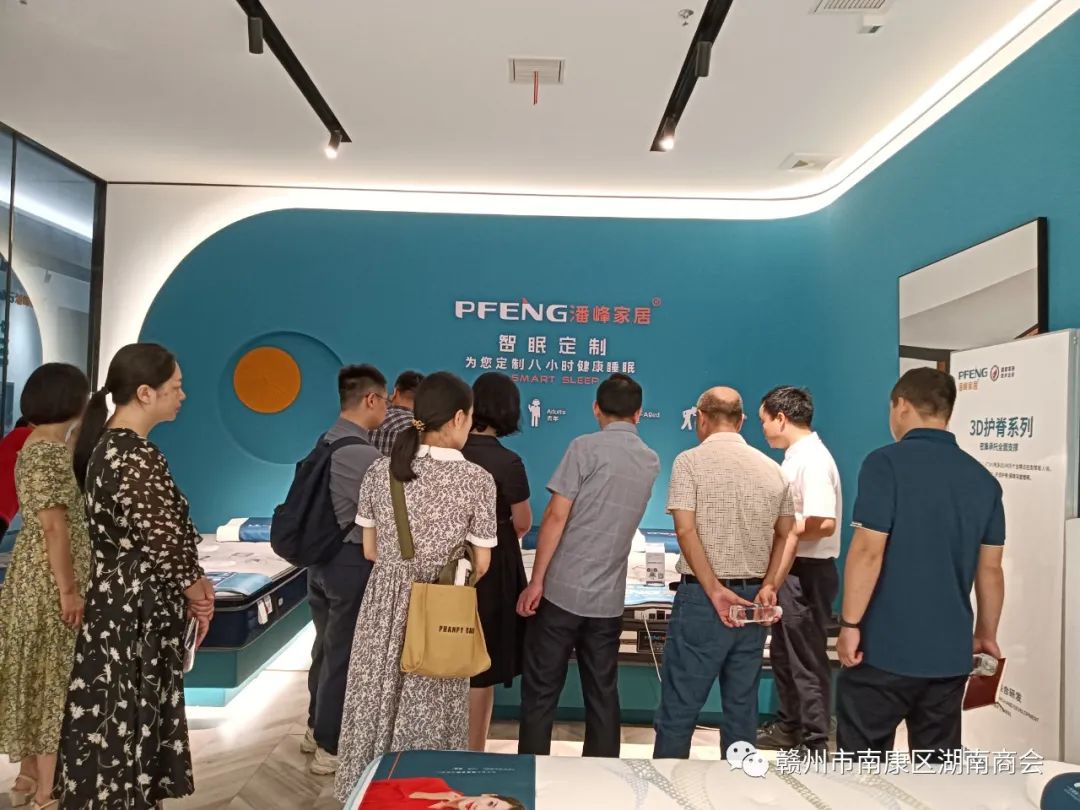 调研组一行首先参观了潘峰家居旗舰展厅,了解了公司发展历程,参观并体验了潘峰家居的家具、最新科技产品。随后,调研组在潘峰家居会议就南康家具行业发展情况开展了座谈调研,详细了解了南康家具行业构成特点和发展状况。座谈会上,黄征书记就南康家具发展历史、经验做法做了重点介绍并对南康湖南商会做了相关介绍并指出:南康湖南是南康区最大的异地商会,其中江西潘峰家居有限公司是湖南商会最具有代表性的家具企业之一。