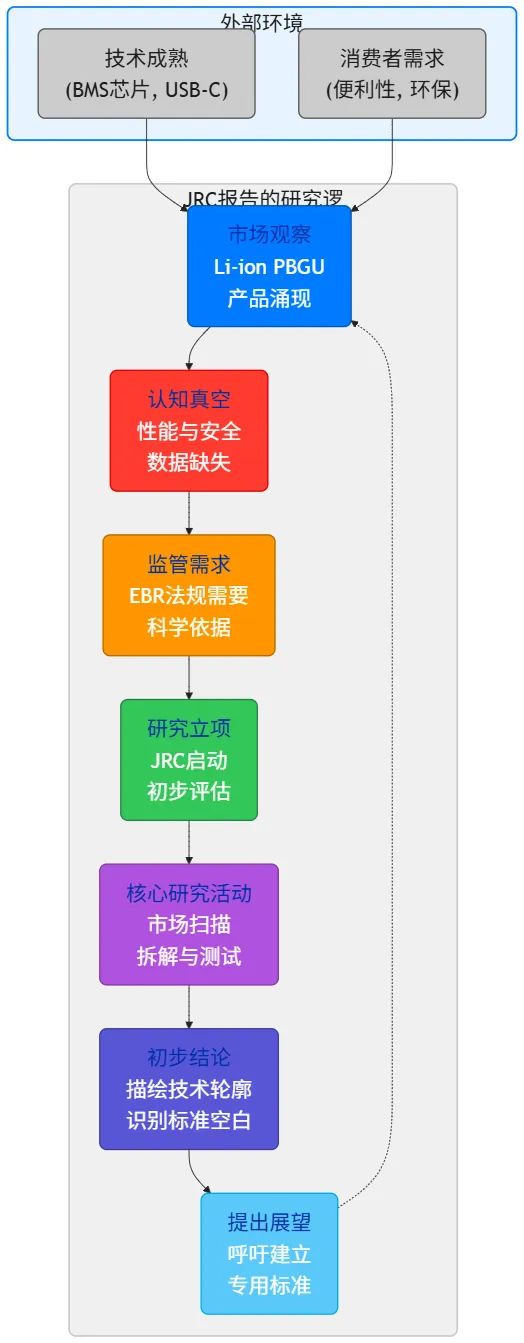 案例:欧盟手机统一充电接口法案 欧盟强制统一手机等电子设备充电接口为USB-C的法案,其背后就是长达十余年的研究、评估和市场观察。JRC的这份报告,很可能就是未来针对Li-ion PBGU进行更严格、更细致立法的“第一块砖”。