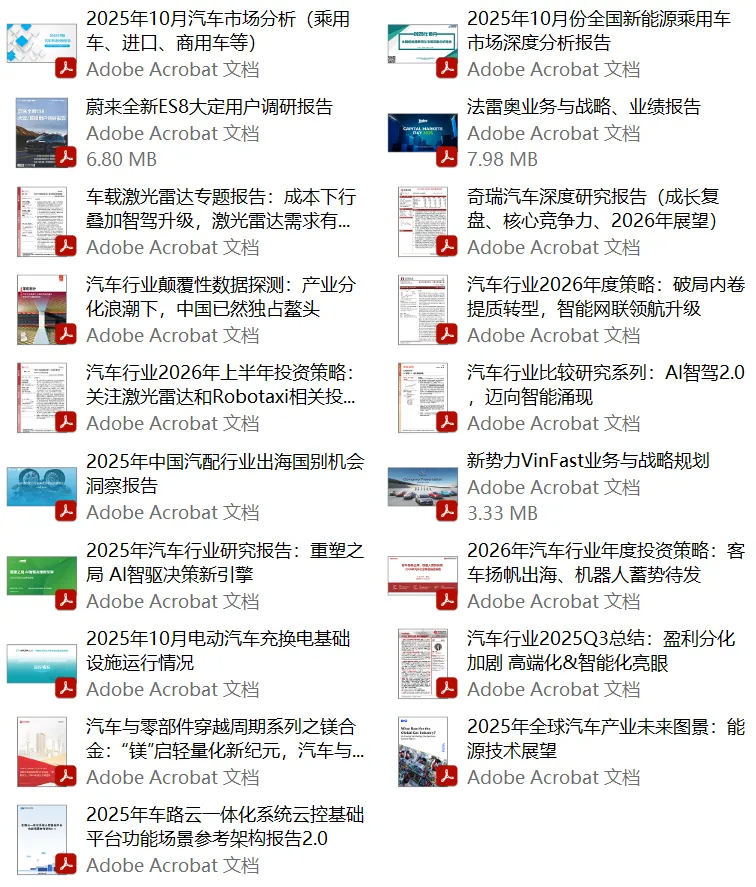 需要批量下载和及时更新最新汽车行业分析报告的朋友,可以加入我们的《车友圈》分享会,大量的中外文精品汽车行业分析报告及各类专题资料将会优先分享到车友圈中,加入即可下载全部报告。