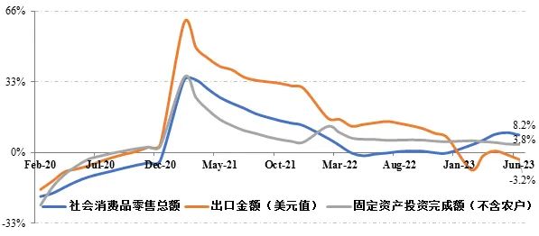 图3:我国“三驾马车”指标累计同比增速