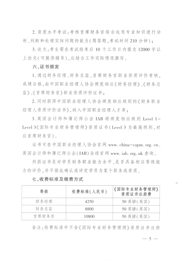 2.资质水平考试:考核首席财务官综合运用专业知识进行分析、判断和处理实际问题的能力(简答题,考试时间210分钟);