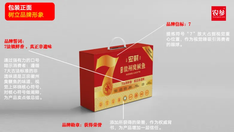 ▲榜样营销通过“第一脸谱”理论设计的宏村®臭鳜鱼包装